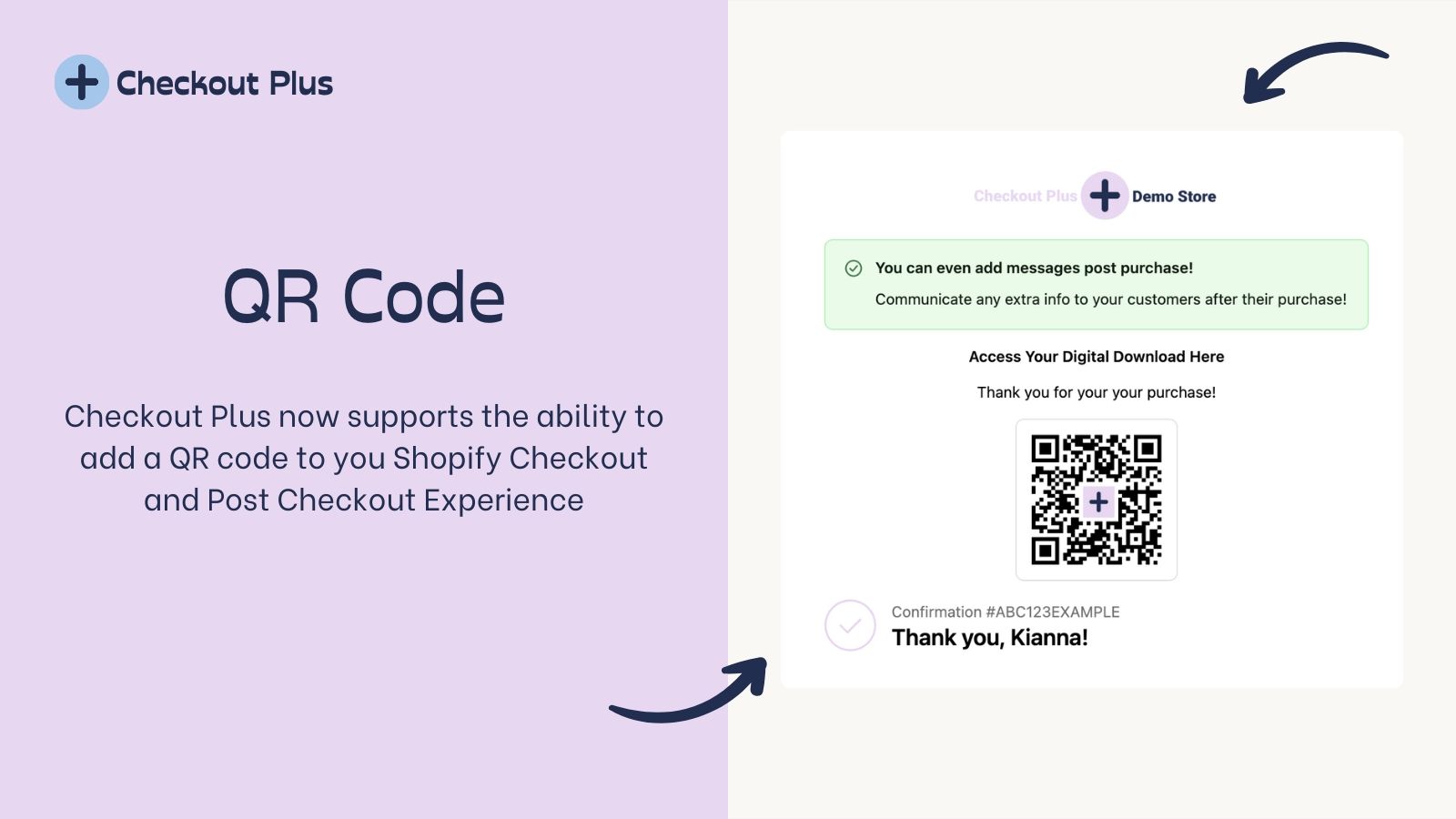 Get started now with the ability to customize you Shopify Checkout and Post Checkout Pages like the Thank you & Order Status Pages with the ability to add QR Codes and Images.